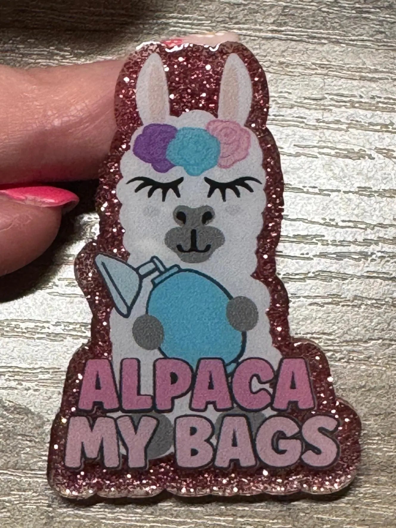 This charming design features a cute alpaca wearing a colorful floral crown, holding a ambu bag, paired with the playful phrase "Alpaca My Bags." Perfect for respiratory therapists, travel nurses, or anyone in healthcare with a sense of humor!